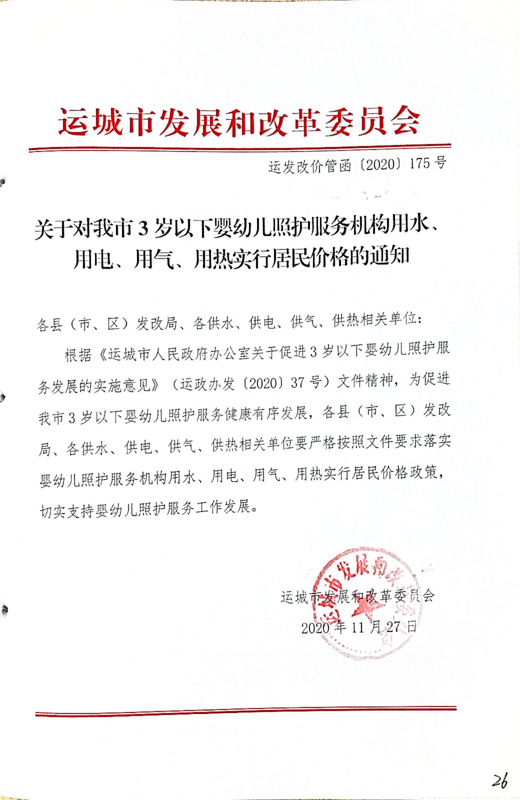 關(guān)于對我市3歲以下嬰幼兒照護(hù)服務(wù)機(jī)構(gòu)用水、用電、用氣、用熱實(shí)行居民價(jià)格的通知