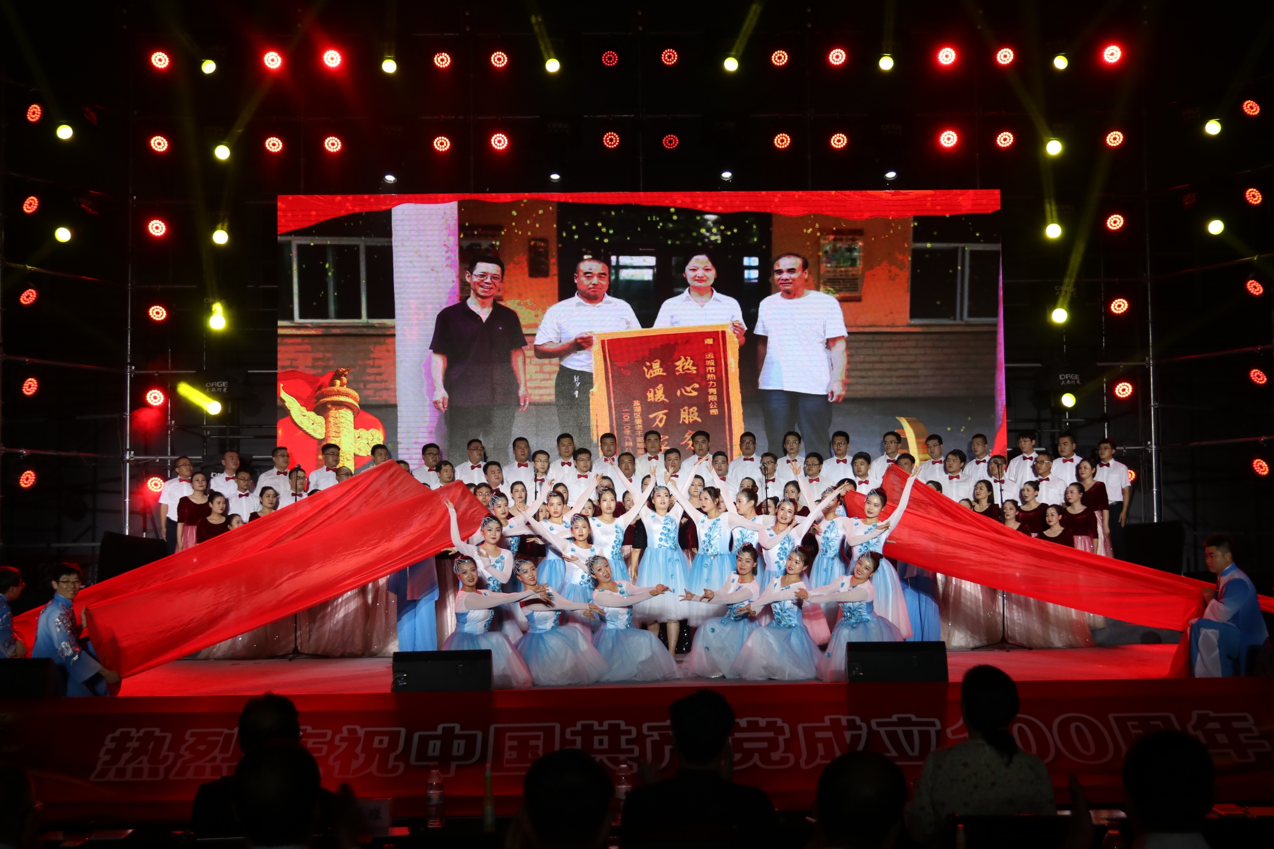 夜色中晚風(fēng)送來(lái)陣陣清涼,優(yōu)美的歌聲迎來(lái)如潮的掌聲。當(dāng)晚,各個(gè)參賽隊(duì)依次登臺(tái)演唱。在必唱曲目《沒(méi)有共產(chǎn)黨就沒(méi)有新中國(guó)》的嘹亮歌聲中拉開(kāi)帷幕。我公司深情悠揚(yáng)的唱響自選曲目《天耀中華》,唱出國(guó)有企業(yè)黨員干部職工的濃濃愛(ài)黨情,展示了國(guó)有企業(yè)黨組織及黨員干部朝氣蓬勃、積極向上的風(fēng)采,將整場(chǎng)比賽推向高潮。在全場(chǎng)高唱《歌唱祖國(guó)》的歌聲中落下帷幕。最后,運(yùn)城市熱力有限公司以9.86分的優(yōu)異成績(jī)獲得比賽一等獎(jiǎng)。