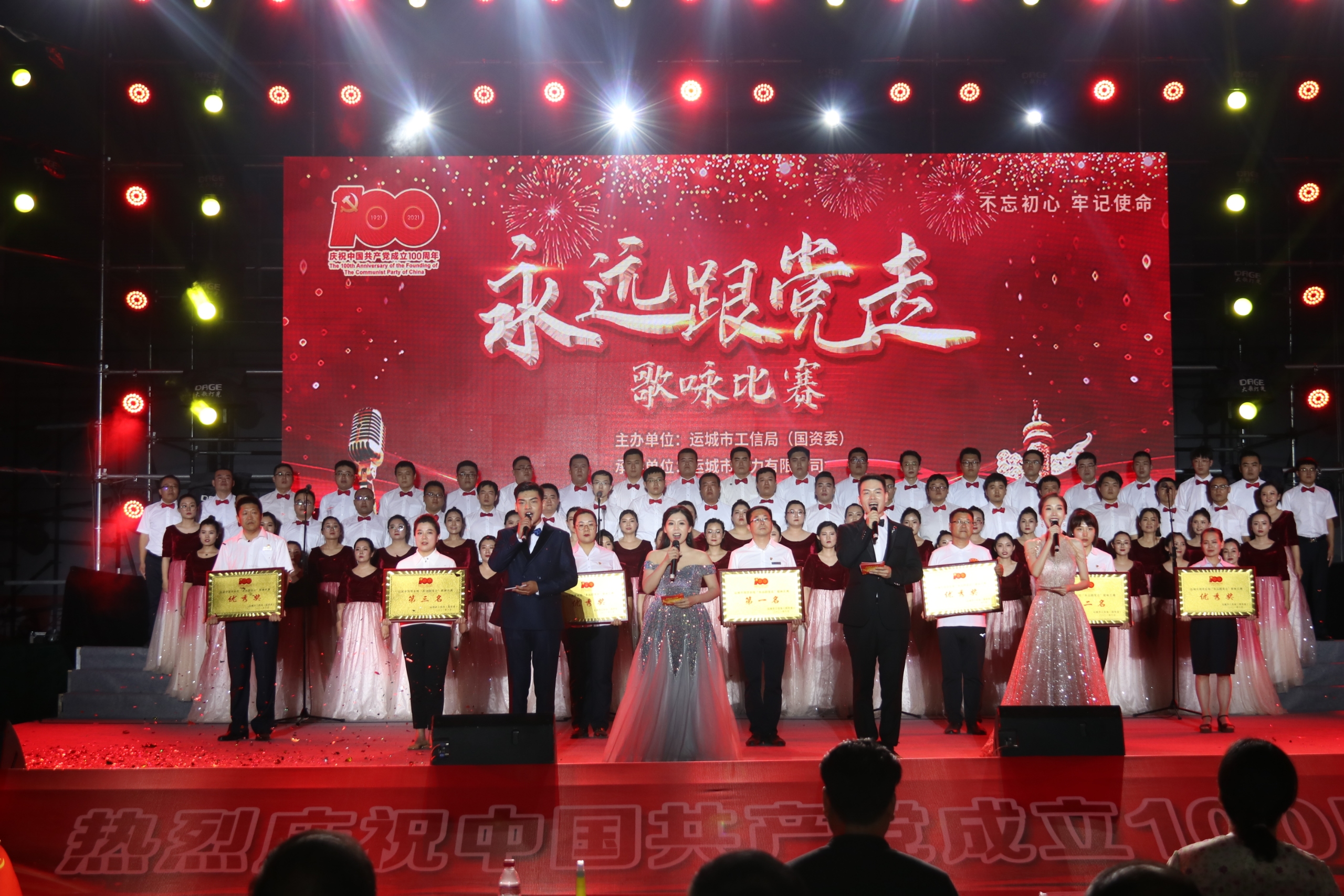 為深入推進(jìn)黨史學(xué)習(xí)教育,隆重慶祝中國(guó)共產(chǎn)黨成立100周年,6月21日,由市工信局(國(guó)資委)主辦運(yùn)城市熱力有限公司承辦的“永遠(yuǎn)跟黨走”慶祝建黨100周年歌詠比賽在熱源廠管理分公司舉行。市人大常委會(huì)黨組成員、副主任潘志孝、市工信局黨組書記、局長(zhǎng)彭夢(mèng)森、市國(guó)資委黨委書記、市工信局黨組副書記賀紅生等領(lǐng)導(dǎo)出席并為獲獎(jiǎng)單位頒獎(jiǎng)。此次比賽共有民航機(jī)場(chǎng)、水投公司等七支隊(duì)伍共計(jì)400余人參演。